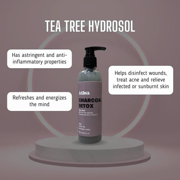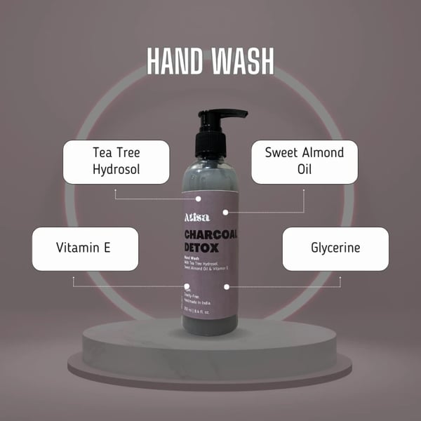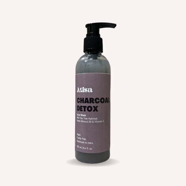 Leave your hands feeling fresh and hydrated with Atisa's collection of hand washes for a truly unique and memorable fragrance experience! Crafted with natural hydrosols, that are the gentler version of essential oils but with all the same goodness, they absorb easily into the skin nourishing it from within. Charcoal Detox is formulated with Tea Tree Hydrosol that: has astringent and anti-inflammatory properties, helps disinfect wounds, treat acne and relieve infected or sunburnt skin, refreshes and energizes the mind. Along with the added benefits of Sweet Almond Oil, Vitamin E and Glycerine for maximum skin nourishment.
