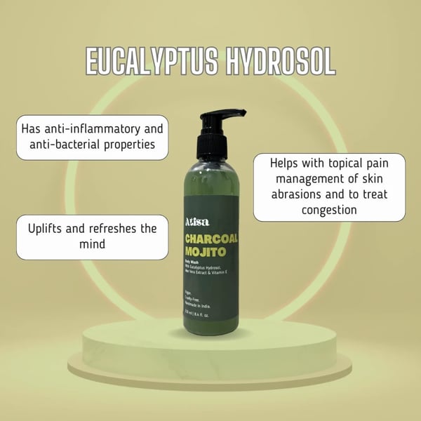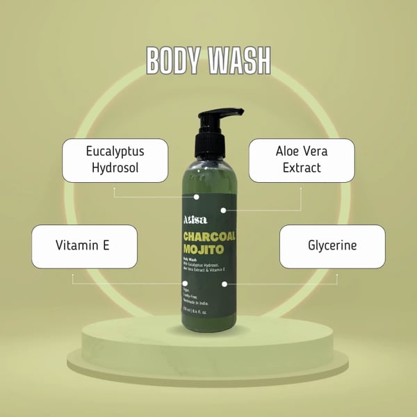 Leave your skin feeling fresh and hydrated with Atisa's collection of body washes for a truly unique and memorable fragrance experience! Crafted with natural hydrosols, that are the gentler version of essential oils but with all the same goodness, they absorb easily into the skin nourishing it from within. Charcoal Mojito is formulated with Eucalyptus Hydrosol that: has anti-bacterial and anti-inflammatory properties, helps with topical pain management of skin abrasions and to treat congestion, uplifts and refreshes the mind. Along with the added benefits of Vitamin E, Aloe Vera Extract and Glycerine for maximum skin nourishment.