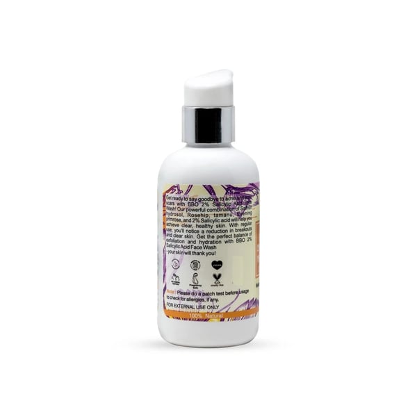 Get ready to say goodbye to acne and acne scars with BBO 2% Salicylic Acid Face Wash! Our powerful combination of Saffron hydrosol, Rosehip, tamanu, Evening primrose, and 2% Salicylic acid will help you achieve clear, healthy skin. With regular use, you’ll notice a reduction in breakouts and clear skin. Get the perfect balance of exfoliation and hydration with BBO 2% Salicylic Acid Face Wash – your skin will thank you!