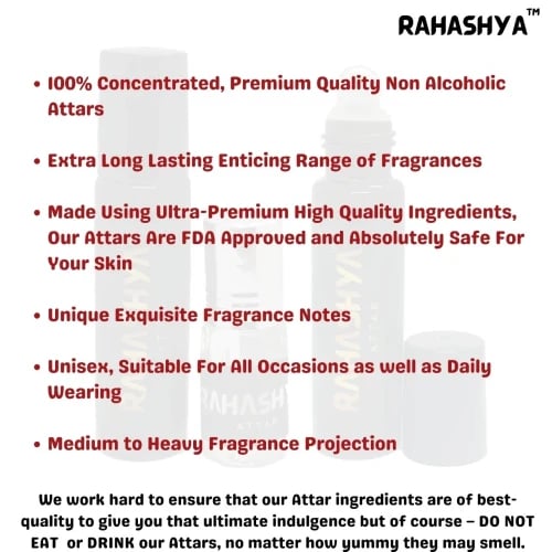 5) Carefully crafted attars with unique long lasting fragrance notes that will delight your senses. With theircombination of purity, ethnic production and enchanting scents, our attars truly offers the best of all world