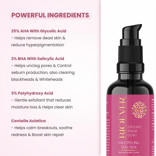 Exfoliation helps you remove all those dead skin cells and get smooth, glowing skin. The Wellness Shop's AHA BHA PHA (32%) Face Serum helps,