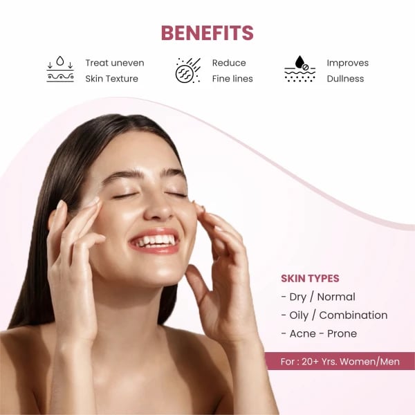 Lactic Acid helps in treating hyperpigmentation, age spots, and other factors that contribute to dullness and uneven complexion.