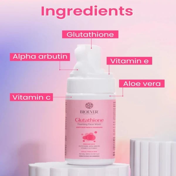 glutathione , vitamin c, alpha arbutin , vitamin e & aloe vera ext.