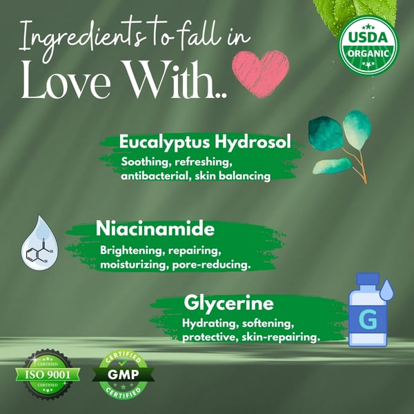 Eucalyptus Hydrosol: Known for its calming properties, the Eucalyptus hydrosol in the face wash offers a refreshing and gentle cleansing experience.