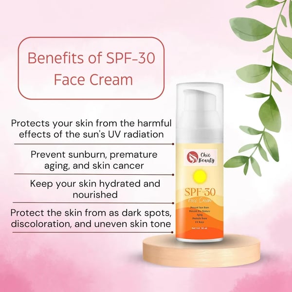 An SPF-30 Face Cream provides broad-spectrum protection against both UVA and UVB rays.