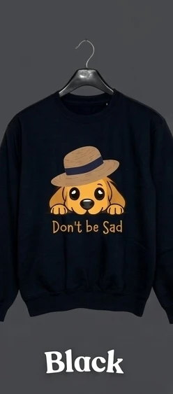 Add a cute and positive vibe to your outfit with this Don’t Be Sad Dog Graphic Sweatshirt. The design features an adorable dog wearing a hat with the message “Don’t Be Sad”, making it a fun and uplifting style for everyday wear.