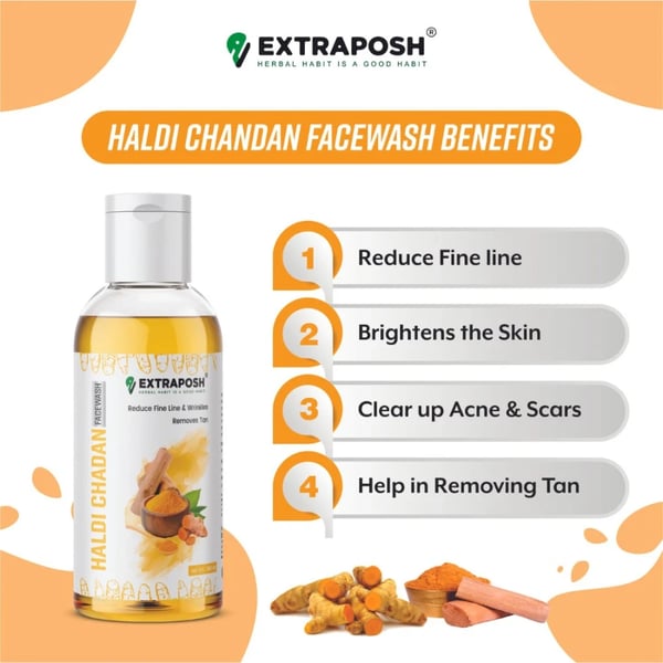 Extraposh Haldi & Chandan Face Wash is unique for its combination of turmeric (haldi) and sandalwood (chandan), two potent ingredients known for their skin-beneficial properties, such as brightening, soothing, and cleansing.