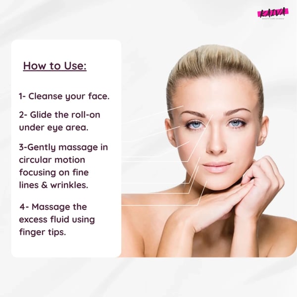 • KAIVA under eye serum contains all natural & organic ingredients. Made with soothing cucumber and hyaluronic acid.