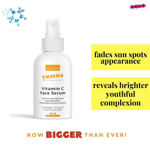 • Fade the appearance of sun spots, discoloration, redness, hyperpigmentation, and dark spots with Kaiva’ Vitamin C Serum.