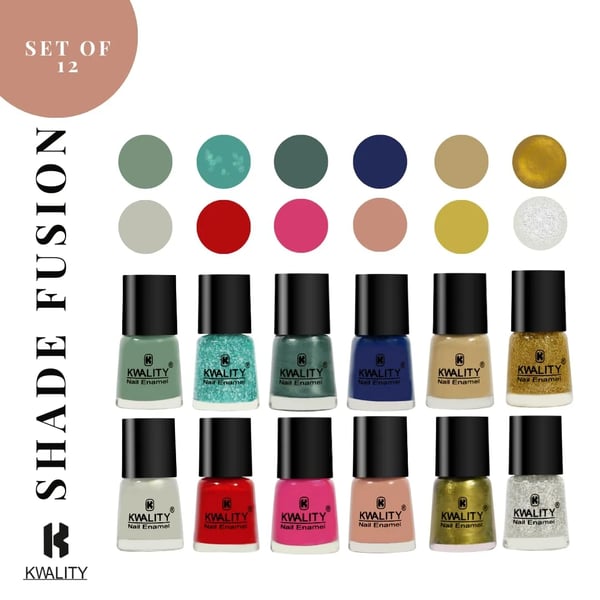 Vibrant Colour Variety: Explore a spectrum of trendy and vibrant colours with the Kwality Color Cosmetics Nail Paint Set of 12. This set is carefully curated to offer a diverse range of hues, allowing you to express your unique style and creativity.
