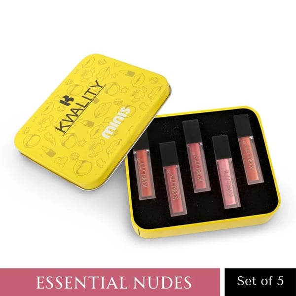 Kwality Mini Matte Liquid Lipstick Kit stands out for its high pigmentation and long-lasting formula. The pack includes five essential nude shades that are non-transfer, lightweight, and water and smudge-proof, making it ideal for all-day wear.