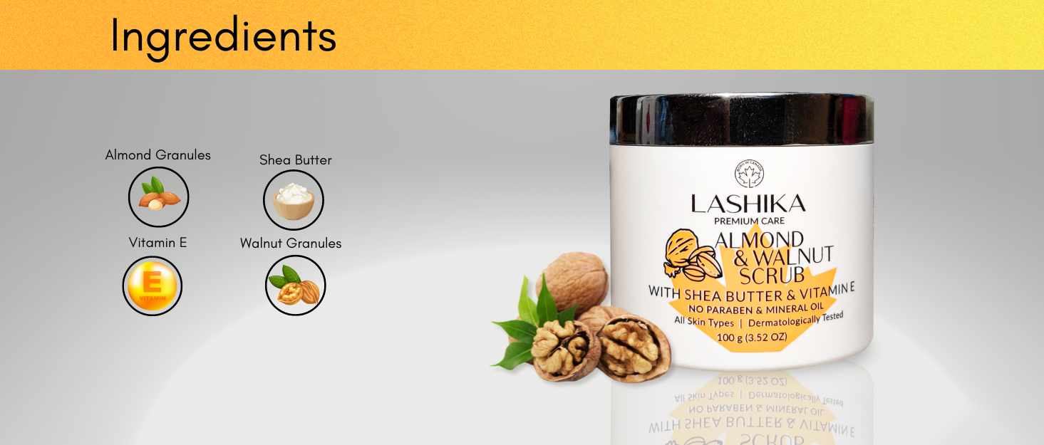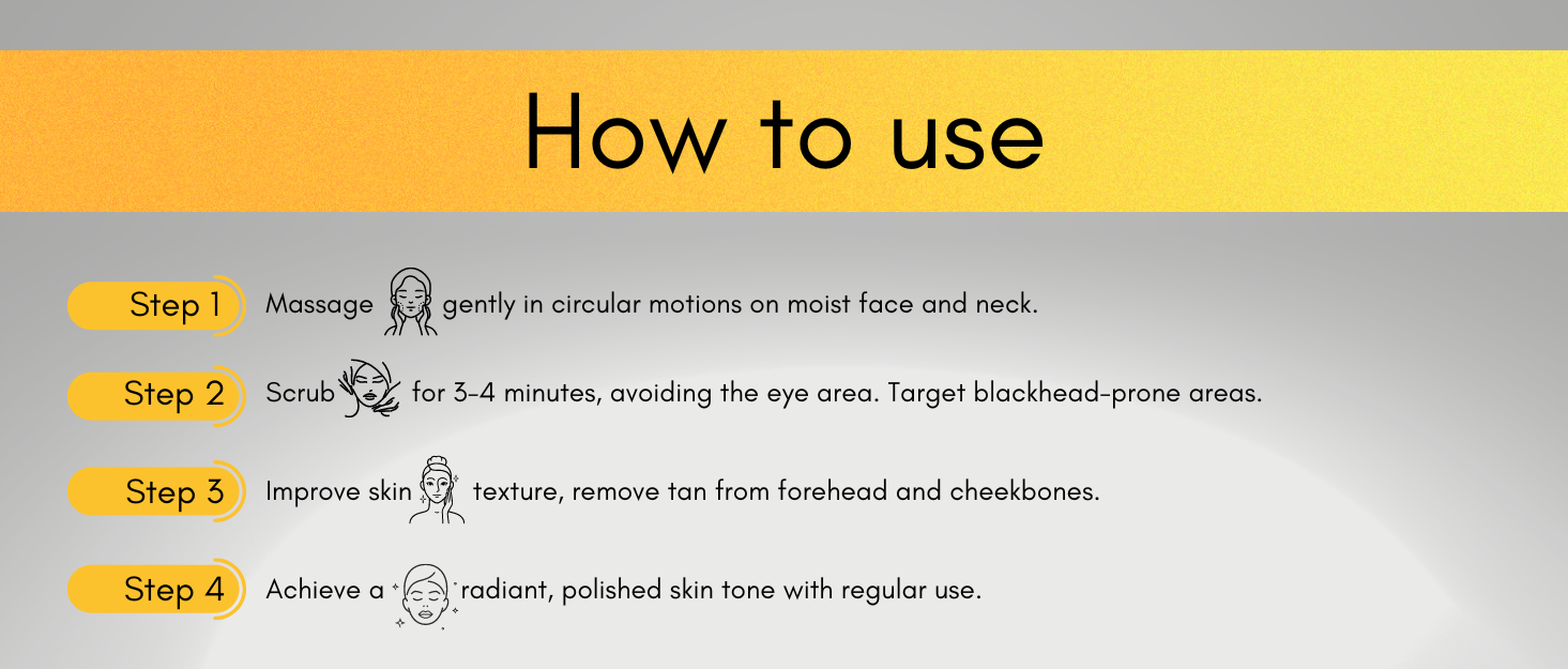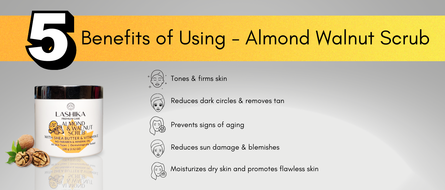 Step 1 - Apply Lashika LASHIKA Walnut Scrub in small circular movements to cleanse your skin