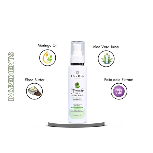 Moringa Oil, Shea Butter, Folic Acid Extract, Aloe Vera Juice, Almond Oil, Olive Oil