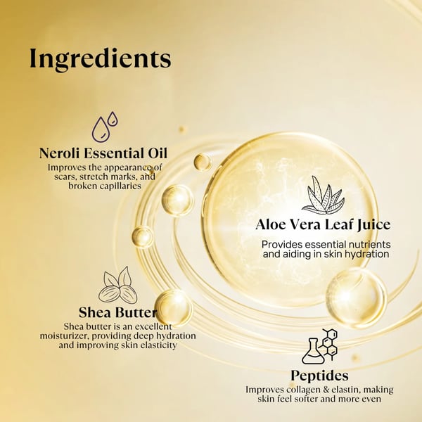 Acid, Lactic Acid, Butyrospermum Parkii (Shea) Butter, Citrus Aurantium Amara (Neroli) Flower Oil, Ceramide NP,