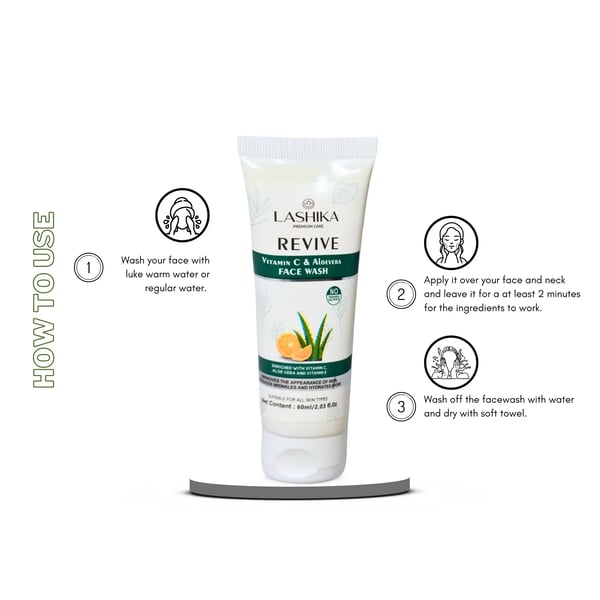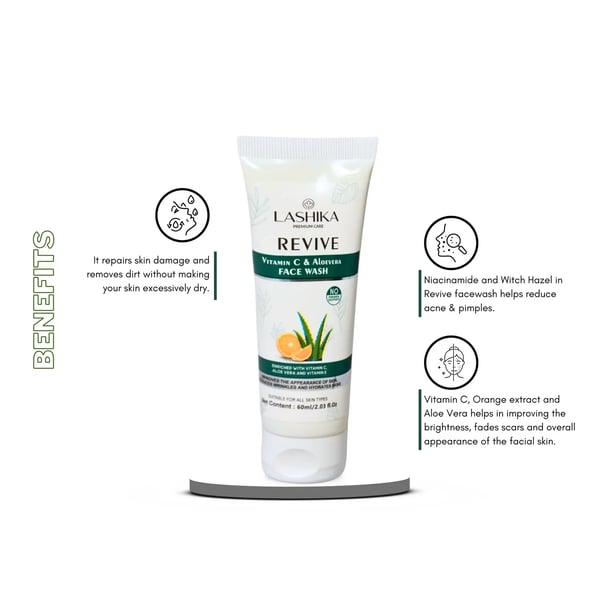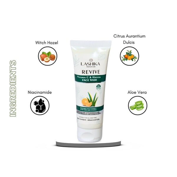 LASHIKA Revive Vitamin C & Aloevera Facewash containing Niacinamide, Aloe Vera, Orange extract, Witch Hazel and Vitamin C.