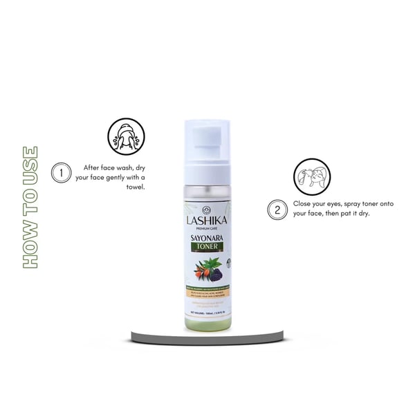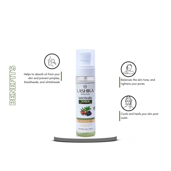 Use of LASHIKA Sayonara Toner post face wash with Sayonara Face Wash helps to absorb excess oil from your skin and prevent mild forms of acne, such as pimples, blackheads, and whiteheads. It balances the skin tone, tightens your pores, and cools & heals your.