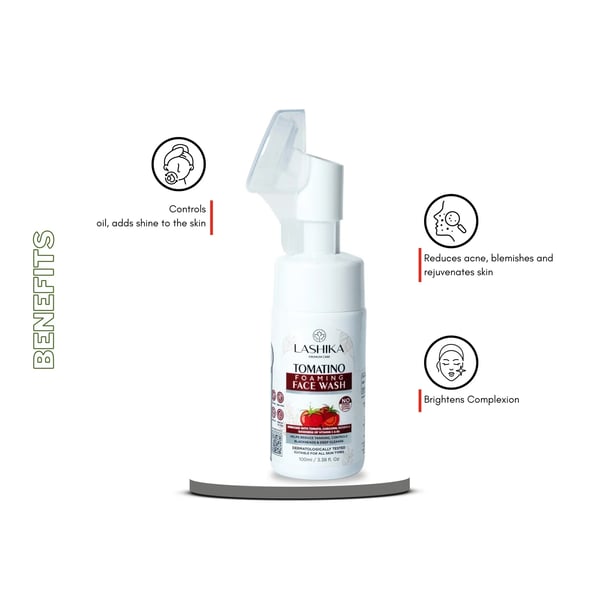 The first in kind antibacterial Tomatino Foaming Face wash plays a key role in balancing skin’s pH level, sebum production, detanning and smoothening of skin.