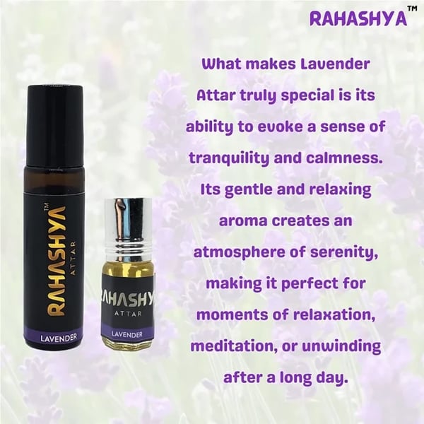 Lavender by Rahashya is a Captivating and Enchanting Attar that Captures the Essence of Lavender Fields in Full Bloom. This Attar has Long been Revered for Its Soothing Properties, Known to Alleviate Stress, Anxiety, and Insomnia. What Makes Lavender Attar Truly Special is Its Ability to Evoke a Sense of Tranquility and Calmness. Its Gentle and Relaxing Aroma Creates an Atmosphere of Serenity, Making it Perfect for Moments of Relaxation, Meditation or Unwinding After a Long Day. Beyond Its Calming Effects, Lavender Attar also Offers a Range of Other Benefits. Its Refreshing Scent can Uplift the Spirit, Boost Mood, and Promote Mental Clarity. The Fragrance is Often Used to Enhance Focus and Concentration, Making it an Ideal Companion During Work or Study Sessions.