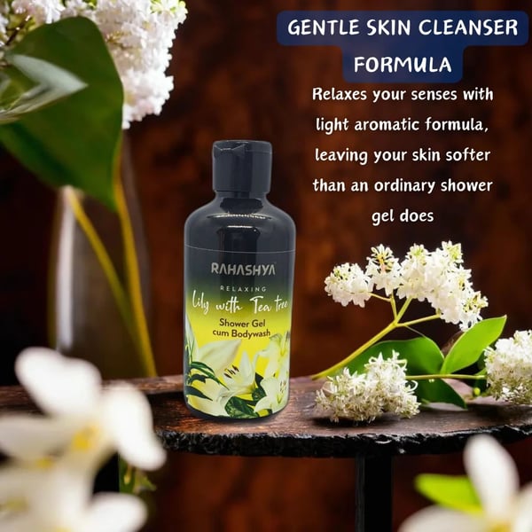 Refresh your senses and nourish your skin with Rahashya Lily with Tea tree Shower gel cum Body wash. This natural, vegan-friendly body wash features a brightening blend of lilac, geranium, and tea tree essential oils to awaken your spirit and nourish your body from head to toe. The vitamin-E enriched formula gently cleanses without stripping skin of its natural moisture, while botanical surfactants ensure a lush, creamy lather. Let the uplifting aroma transport you while Rahashya Lily leaves your skin feeling silky soft, healthy and revived. The perfect way to start your day with a smile!