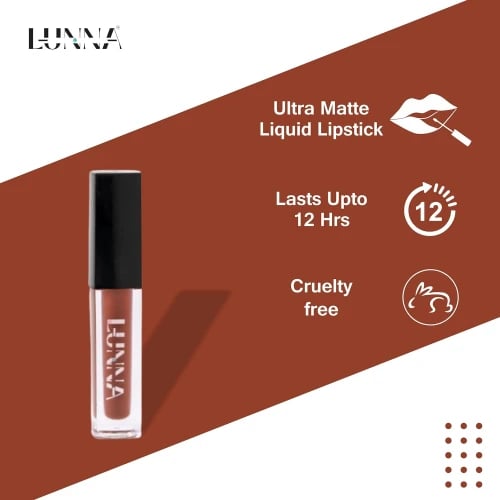 Achieve a bold and beautiful pout with Lunna Matte Finish Liquid Lipstick. This premium brand lipstick boasts an ultra-pigmented formula that delivers a highly saturated color with just one swipe. The long-lasting formula stays put for up to 12 hours, ensuring your lips look flawless all day long. Unlike traditional matte lipsticks, this product features a comfortable matte finish that doesn't feel dry or sticky on the lips. Infused with nourishing ingredients like Vitamin E and jojoba oil, this lipstick keeps your lips soft, hydrated, and healthy. The precise applicator makes it easy to apply the lipstick evenly, even in hard-to-reach areas. Whether you're looking for a bold red or a subtle nude, Lunna Matte Finish Liquid Lipstick has got you covered. Get ready to turn heads with a statement lip that lasts all day!