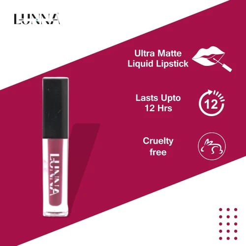 Achieve a bold and beautiful pout with Lunna Matte Finish Liquid Lipstick. This premium brand lipstick boasts an ultra-pigmented formula that delivers a highly saturated color with just one swipe. The long-lasting formula stays put for up to 12 hours, ensuring your lips look flawless all day long. Unlike traditional matte lipsticks, this product features a comfortable matte finish that doesn't feel dry or sticky on the lips. Infused with nourishing ingredients like Vitamin E and jojoba oil, this lipstick keeps your lips soft, hydrated, and healthy. The precise applicator makes it easy to apply the lipstick evenly, even in hard-to-reach areas. Whether you're looking for a bold red or a subtle nude, Lunna Matte Finish Liquid Lipstick has got you covered. Get ready to turn heads with a statement lip that lasts all day!