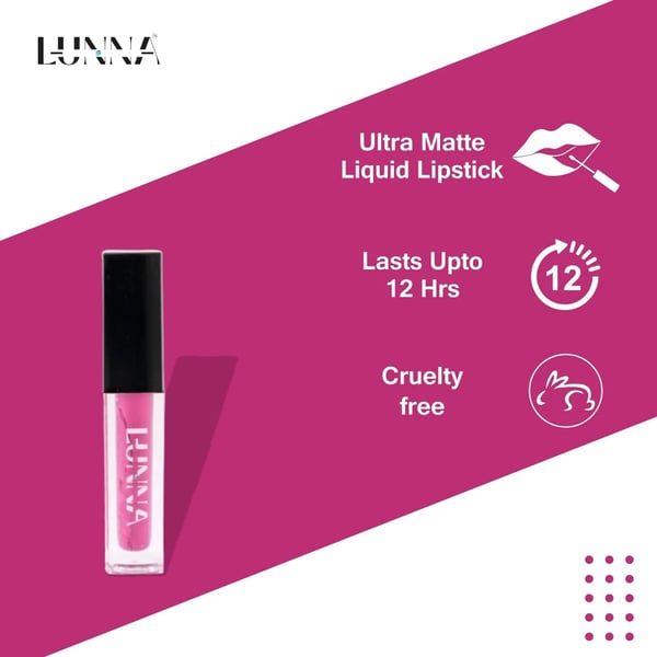 Achieve a bold and beautiful pout with Lunna Matte Finish Liquid Lipstick. This premium brand lipstick boasts an ultra-pigmented formula that delivers a highly saturated color with just one swipe. The long-lasting formula stays put for up to 12 hours, ensuring your lips look flawless all day long. Unlike traditional matte lipsticks, this product features a comfortable matte finish that doesn't feel dry or sticky on the lips. Infused with nourishing ingredients like Vitamin E and jojoba oil, this lipstick keeps your lips soft, hydrated, and healthy. The precise applicator makes it easy to apply the lipstick evenly, even in hard-to-reach areas. Whether you're looking for a bold red or a subtle nude, Lunna Matte Finish Liquid Lipstick has got you covered. Get ready to turn heads with a statement lip that lasts all day!