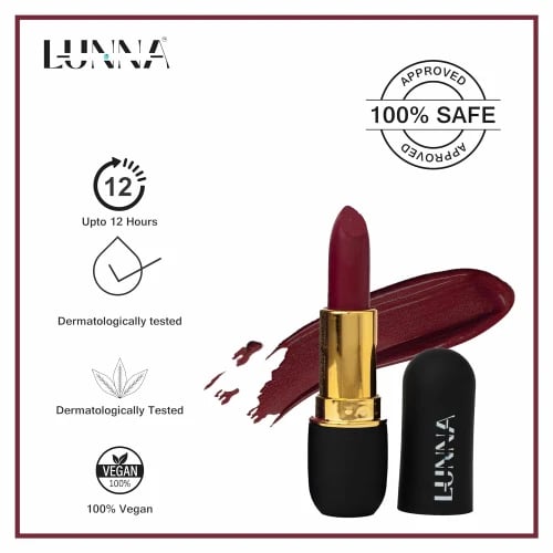 Lunna Matte Wine Cream Finish Lipstick For Girls & Women | Long Lasting |Lips Hydration & Moisturization| All-day Wear | Smudge Proof,Waterproof Perfect for Daily Use | 3.5g | BERRY CRUSH