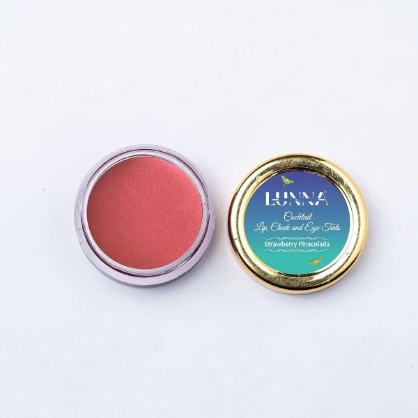 LUNNA STRAWBERRY PINACOLADA-LIP CHEEK & EYE TINT | Best As Tinted Lip Balm/Lip Gloss, Tinted Blush & Eye Shadow | Vegan-friendly| Long Lasting| (Pink)8g
