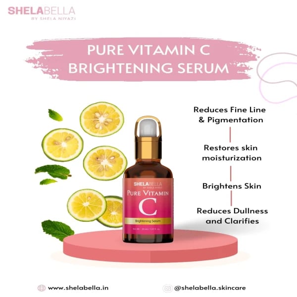 Vitamin C, Reduces fine Line & Pigmentation, Restore skin Moisturization, Brightens Skin, Reduces Dullness & Clarifies.