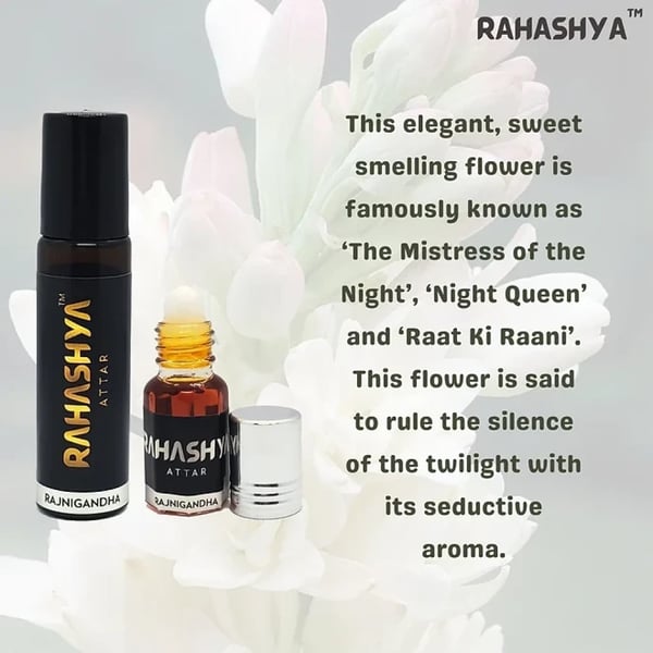 Rajnigandha by Rahashya is a Mesmerising, Long-Lasting Indian Attar and is also Known as Tuberose. This Elegant, Sweet Smelling Flower is Famously Known as ‘The Mistress of the Night’, ‘Night Queen’ and ‘Raat Ki Raani’ in Hindi. This Flower is Said to Rule the Silence of the Twilight with Its Seductive Aroma. This Tranquil Aroma has Various Uses and Being Used During Prayers, Spiritual Gatherings and Meditation, Aromatherapy, Naturopathy etc. In Ayurveda, Rajnigandha has the Ability to Strengthen the Mind and Enhance Emotional Stability.