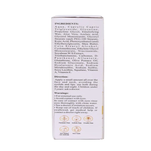 This Glowing lotion contains Aloe Vera, shea Butter, Vitamin B Niacinamide and Hyaluronic acid, Vitamin A and Vitamin E.