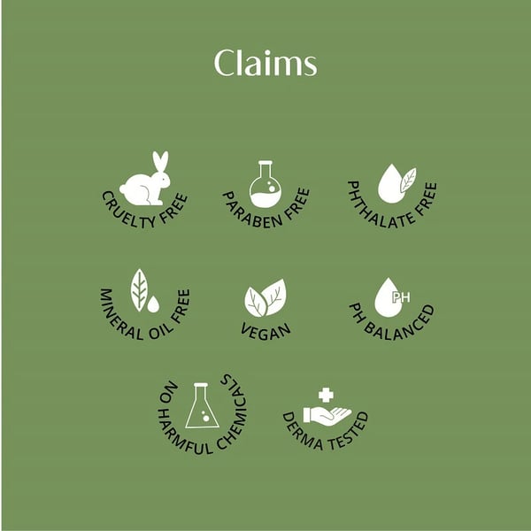 · CLAIMS:Dermatologically tested, Cruelty-Free, Paraben-Free, Mineral Oil-Free, Phthalate-Free, Vegan, pH Balanced, No Harmful Chemicals.