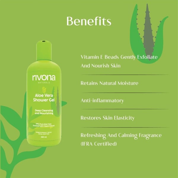Elevate your shower experience with the soothing and revitalizing touch of Rivona Naturals Aloe Vera + Neem Shower Gel – where nature meets cleansing for a nourished and refreshed feel.