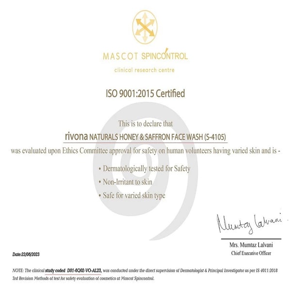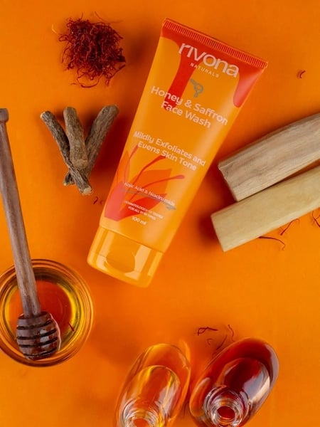 Enriched with Kojic Dipalmitate, Niacinamide, Rosemary Oil, Safflower Seed Oil, Honey, Licorice Extract (Mulethi), Saffron Extract, and Sandalwood Extract, Rivona Naturals Honey & Saffron Face Wash offers multiple benefits: