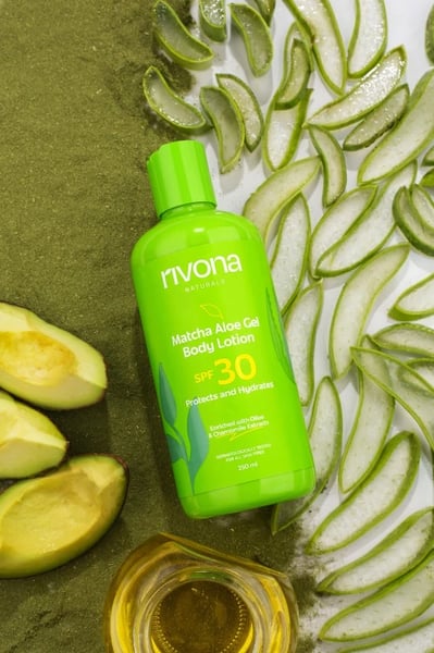 Elevate your skincare routine with the rejuvenating touch of Rivona Naturals Matcha Aloe Gel Body Lotion – where Aloe Vera meets Matcha for sun-kissed nourishment.