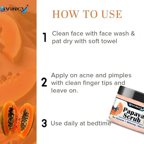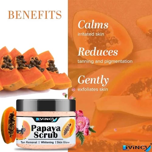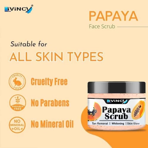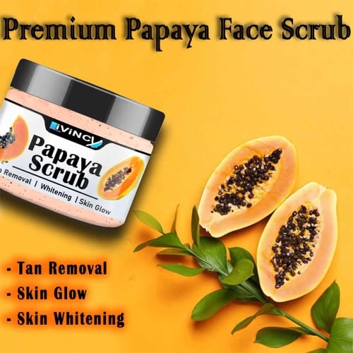 papaya scrub that leaves skin smooth, radiant and glowing. papaya scrub removes blackheads, dead skin cells and even keeps your tan fresh while getting rid of dullness and leaving you with clear, clean skin. Looking to exfoliate, smooth and have glowing skin? This product has design with you in mind. It is perfect for all skin types. An effective scrub that will get rid of dead skin cells, oil, blackheads & even brightens your complexion. This scrub helps deep clean, exfoliate and clay to restore your skin's natural glow and youthfulness. Our exclusive formula combines natural sea minerals with gentle ingredients like loofah, aloe vera and shea butter to help keep the skin looking radiant and young. This gentle, vegan formula is great for all skin types and includes a mild exfoliating scrub, to gently cleanse and refresh skin. Suitable for dry, normal, oily, combination & sensitive skin. Our tans are perfectly suited for all skin types, from the highly sensitive to the combination. The exfoliating particles completely remove dead skin cells and leave skin feeling soft and clean. Treat yourself to a gentle face scrub that is cruelty free and cleanses pores while giving your skin a ton of hydration. With no harsh chemicals, no parabens, and no mineral oil, tanned skin will glow. this face scrub is FDA approved, Contains No Paraben, No Sulphate