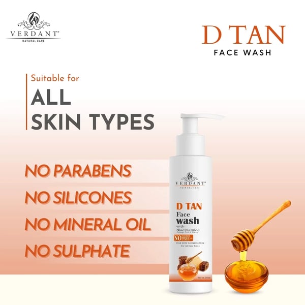 Tan removal: Verdant De-Tan face wash helps you get rid of skin tan, it is 100% natural. It is formulated with ingredients such as licorice powder, piperment oil, glycerin and turmeric which not only brighten the skin but also help in minimizing damage. They directly target the tan and fade it to a point where you will never know it existed.