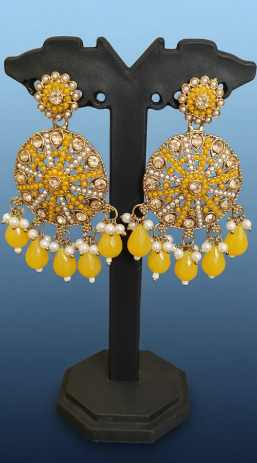 Name: Yellow Beads Gold Plated Mandala Earrings - Festive Party Wear