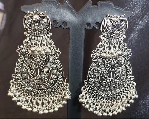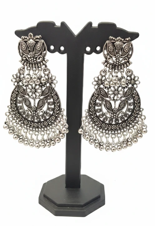Name: Floral Oxidised Silver Chandelier Earrings - Daily Wear