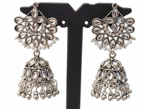 Kundan Pearl Oxidised Jhumka Earrings - Stylish Wedding Look