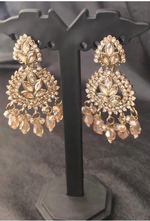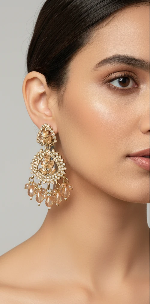 Glow with in these lightweight gold plated earrings - perfect for party wear jewellery and wedding look. Stylish earrings with leaf design and crystals offer traditional look in ethnic jewellery. Affordable daily wear jewellery that is comfy and turns heads