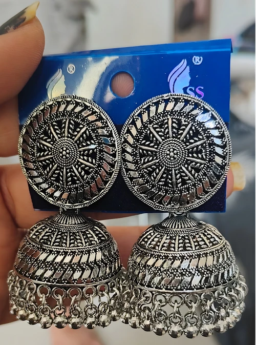 Name: Stylish Oxidised Silver Jhumka Earrings - Party Wear & Daily Use