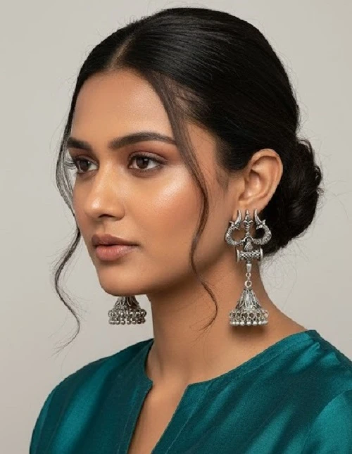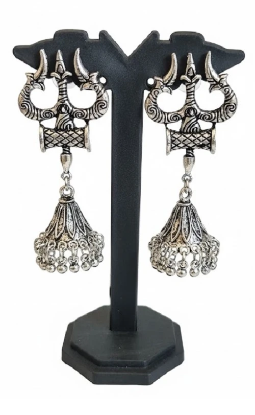 Trishul Oxidised Jhumka Earrings - Festive Ethnic Loo